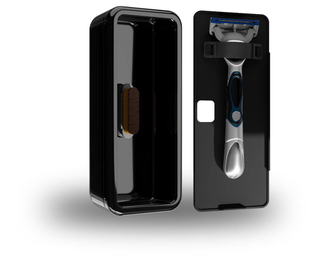 Our set includes everything you need for a premium shaving experience – a sleek razor, a suction brush, and a convenient palette to store them both. Say goodbye to messy counters and hello to a smooth, hassle-free shave.